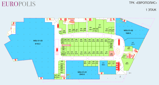 и многие другие. Итого более 160 различных магазинов, общая площадь которых составит порядка 6000 кв. м. Магазины компании Inditex будут занимать около 10% всех торговых площадей ТРК «Европолис».